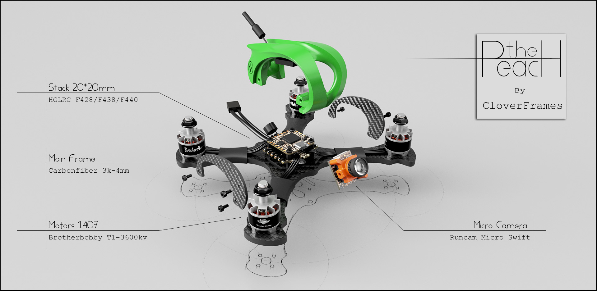 « The Peach » est une conception pure Belge. Son concepteur, Greg alias « Babouch » formé à l'architecture et la modélisation 3D est tombé dans le monde du drone FPV en 2016. Il a très vite accroché mais les châssis qu'il utilisait à ses débuts ne lui convenant pas, il a décidé de créer son propre châssis qu'il a nommé « The Peach ».